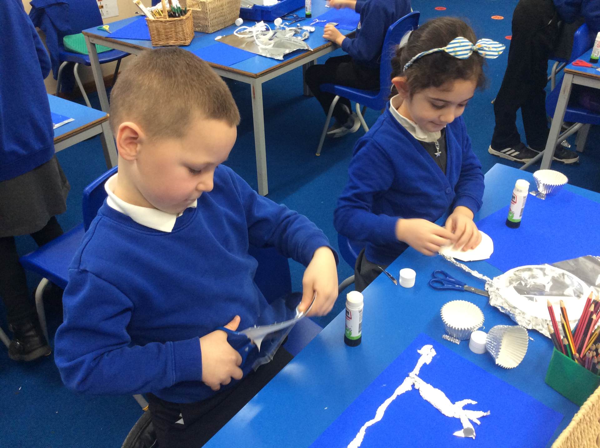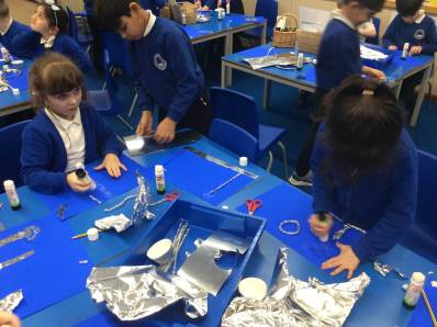 Our new text in Bronze class this half term is 'The Tin Forest' by Helen Ward. Before we even read the book we made some pictures of tin forests using our creative skills. We discussed whether we would like to live in a tin forest and what the positives and negatives would be of living in a forest made of metal!